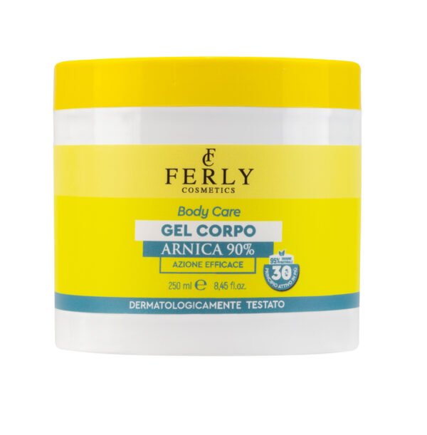 Il Gel Corpo Arnica 90% della Linea Ferly Cosmetics è la soluzione ideale per dolori e tensioni muscolari e articolari. Grazie alle sue proprietà sgonfianti, antinfiammatorie e antidolorifiche, è perfetto per un massaggio drenante che favorisce il benessere dei tessuti. La sua texture in gel garantisce un rapido assorbimento, consentendo alle sostanze funzionali di agire direttamente dove necessario.